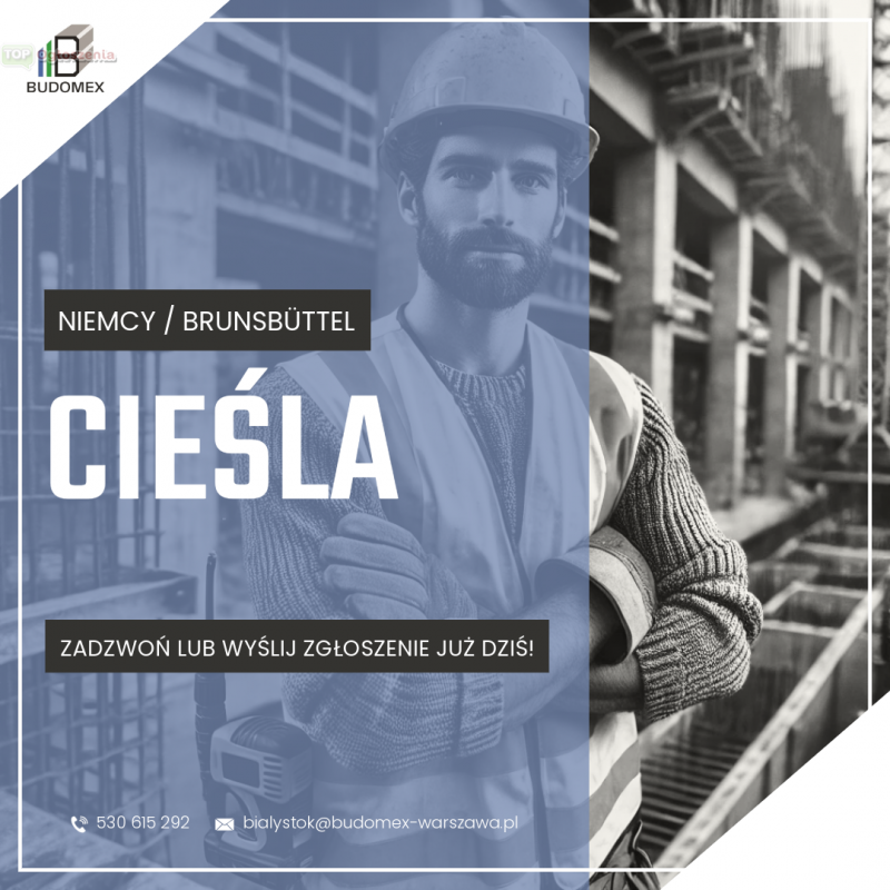 Firma budowlana Budomex poszukuje Cieśli do pracy na projekcie budowlanym w Niemczech (Brunsbüttel). Oferujemy stabilne zatrudnienie na atrakcyjnych warunkach!